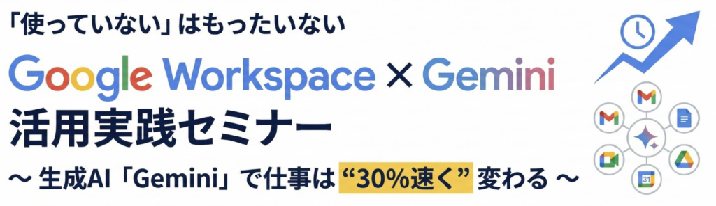 生成AIを取り巻く環境は、昨年の大幅な進化を境に新たなフェーズへと入りました。実験的に使う段階から、企業活動に本格的に組み込む段階へと移行しつつあります。Google Workspace に統合された生成AI「Gemini」は、業務データと連携しながら安全に活用できる点が特長で、経営判断や生産性向上を支える実践的なツールとして位置づけられています。今後、生成AIを活用できる企業とそうでない企業の間で、業務効率や意思決定のスピードに大きな差が生まれることは避けられません。本セミナーでは、Geminiを企業で活用する意義と、経営者として今判断すべきポイントを具体的に解説します。